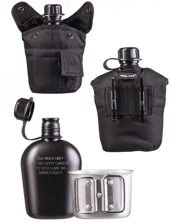 De Mil-Tec veldfles is een praktische drinkfles voor onderweg. Hij wordt geleverd met een zwarte, isolerende hoes en een aluminium mok. De veldfles heeft een inhoud van 1 liter – ideaal om altijd vers water bij je te hebben!